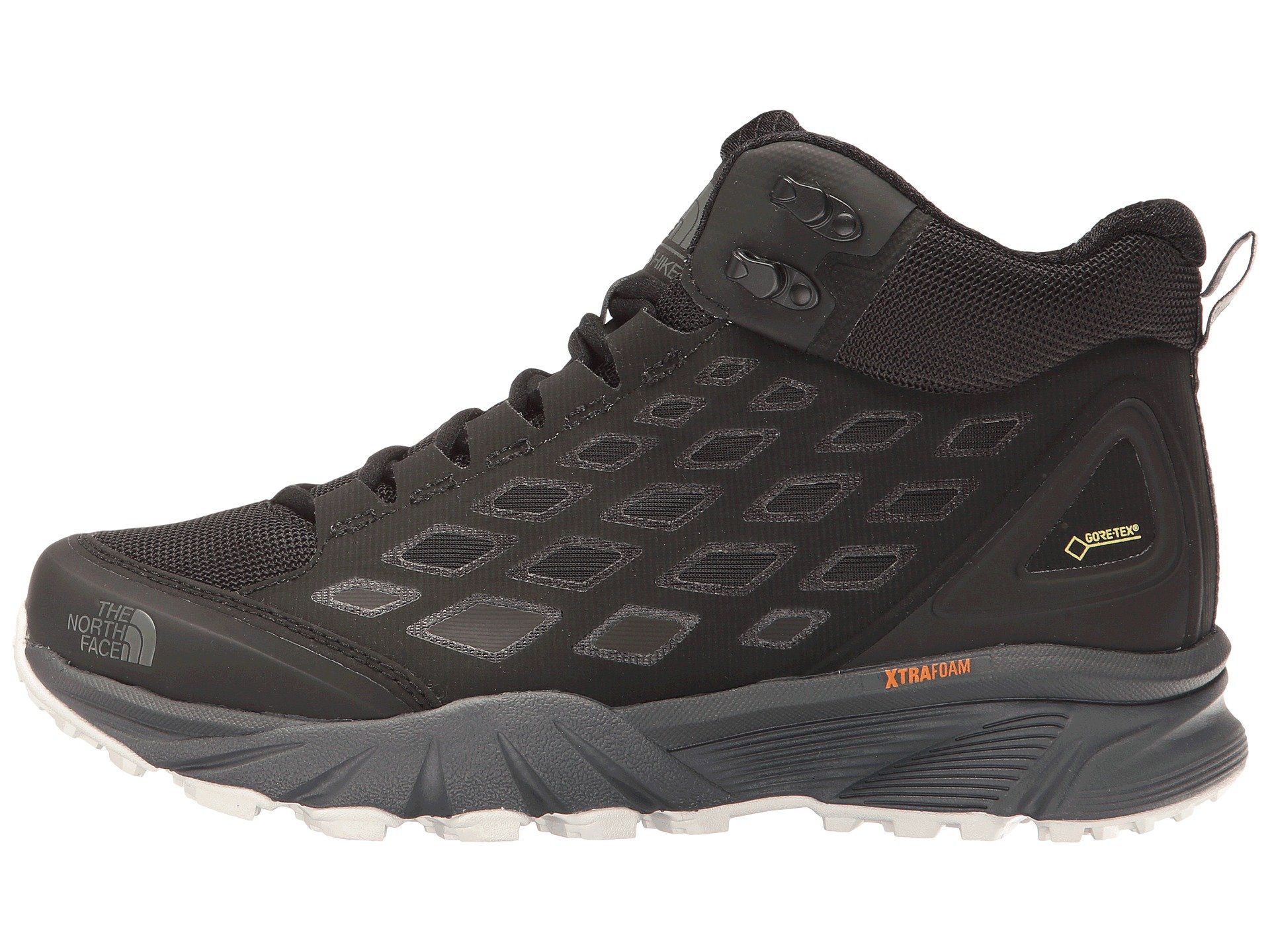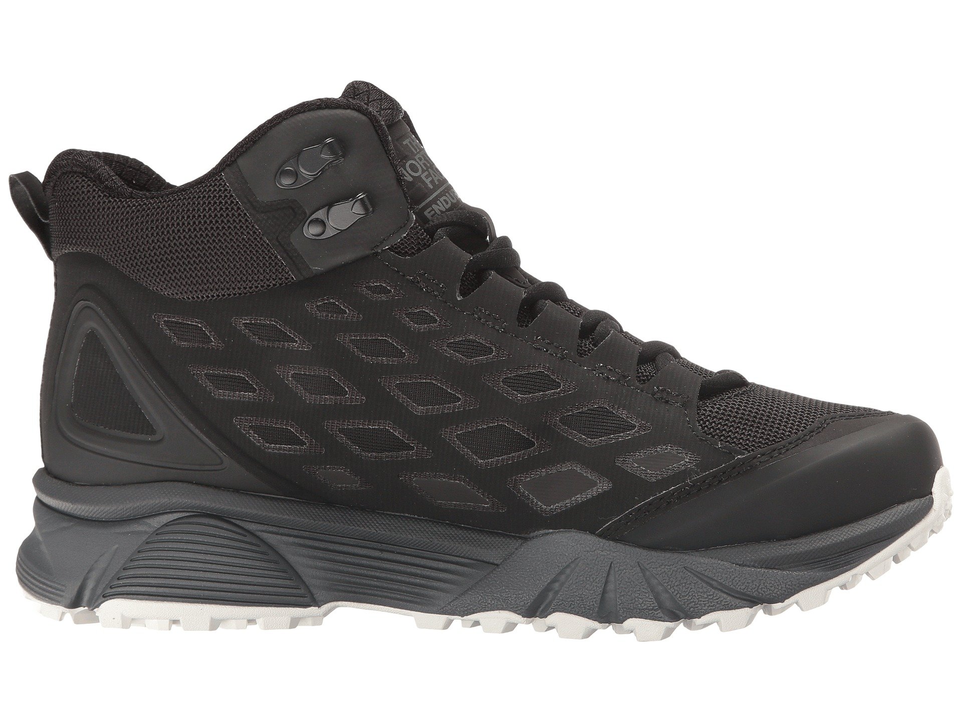 | Product Information SKU: #8832137Please note that this style is either discontinued and/or from a previous season.Set your sights sky-high as you hit the trailhead in The North Face? Endurus Hike Mid GTX? hiking boot.GORE-TEX? waterproof, breathable membrane protects feet from outside elements. Mid-cut height for added ankle stability. Durable textile and synthetic upper materials. Seamless, welded TPU quarter panel supplies structural support and added breathability. Lace-up closure. Protective TPU toe cap. Heel pull tab. Padded tongue and collar. FlashDry™ collar lining keeps feet cooler and drier. Breathable fabric lining offers a great in-shoe feel. OrthoLite™ insole. XtraFoam™ midsole utilizes a combination of soft and firm foams to provide the right blend of comfort and stability. ESS Snake Plate™ from the forefoot to the mid-foot supplies torsional rigidity and protection from stone bruising. Vibram? XS Trek outsole delivers durable multi-directional traction. 4 mm lug depth. Imported. Product measurements were taken using size 8.5, width B - Medium. Please note that measurements may vary by size.Measurements: Weight: 13 oz |