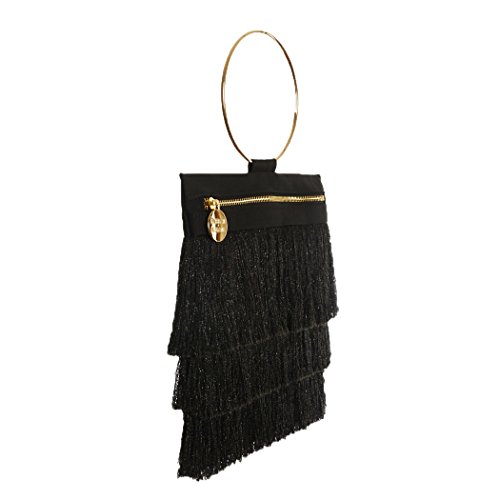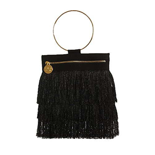 (Farrah Sloane)/Accessories/Handbags/DIRECT FROM USA/Farrah Sloane Cassia Metallic Fringe Bracelet Bag, Black