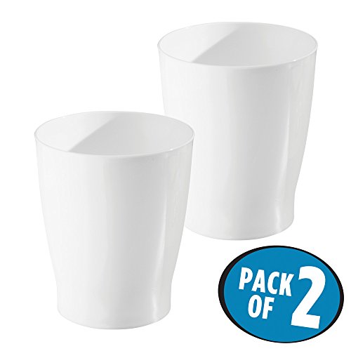 mDesign Round Wastebasket Trash Can for Bathroom Vanity Counter Top - Pack of 2, White