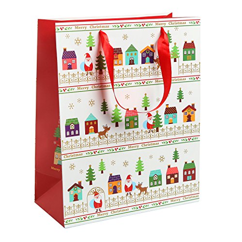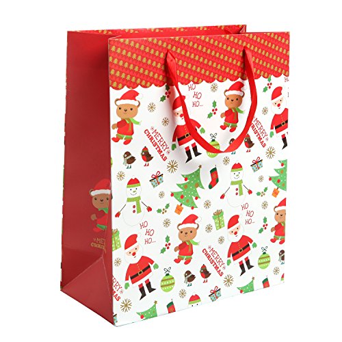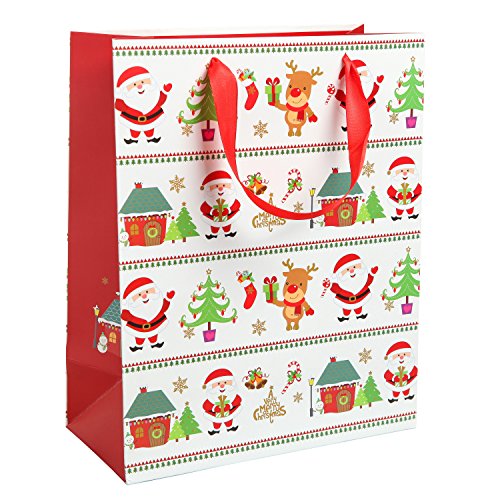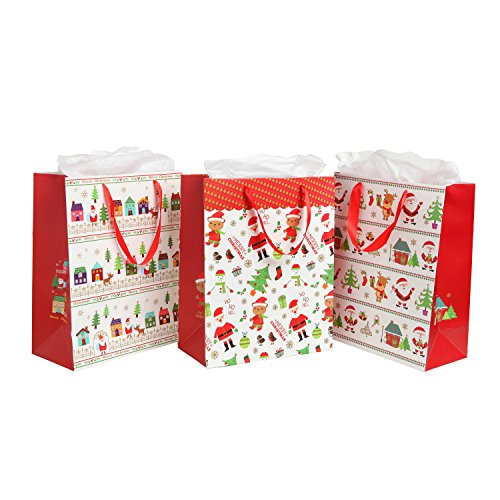 Assorted Festive Christmas Party Gift Bags and Tissues (Santa Claus, Christmas Trees) by MyGift® - Set of 3 Bags