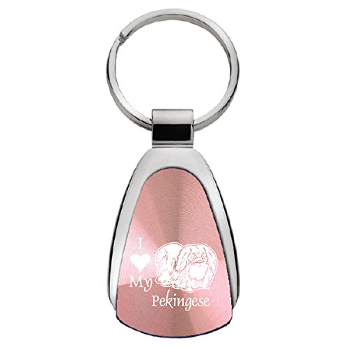 -. Title : Teardrop Keychain-I love my Pekingese-Pink