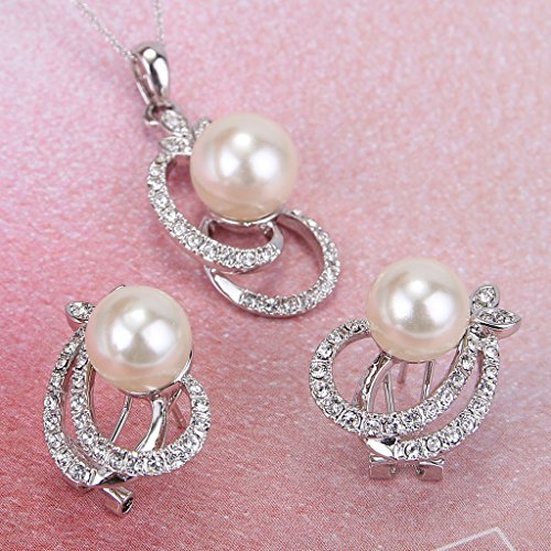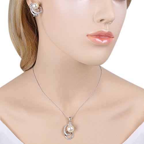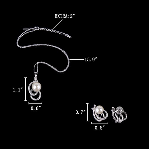 - Feature : Made of crafted environmental friendly Simulated Pearl, Austrian Crystal, this jewelry shines with grace and beauty. And the metal surface is of high polished finish. / Crystal Color: Clear; Simulated Pearl Color: Ivory Color; Necklace Length: 15.9in-17.9in, Pendant Size: 0.6in by 1.1in , Earring Size: 0.8in by 0.7in ; Total Weight: 10g / A perfect accessory to your outfit or as an appropriate gift; Suitable for ball, wedding, party or any special occasions; Click on our Storefront for more fashion styles. / The item in picture with ornament is same as the real object without PS. / Free gift wrap with a pouch or box for an impressive gift presentation; 30-day Money Back Promise.
