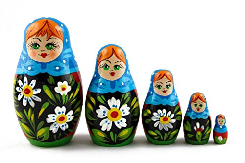 -. Title : Matryoshka Matrioska Babuska Russian Nesting Wooden Doll Marguerites Daisy Babouska Babushka 5 Pcs Stacking Hand Painting Beautiful Nested Craft Matriosjka Matreoska Matreshka Matrjoska Matroeska