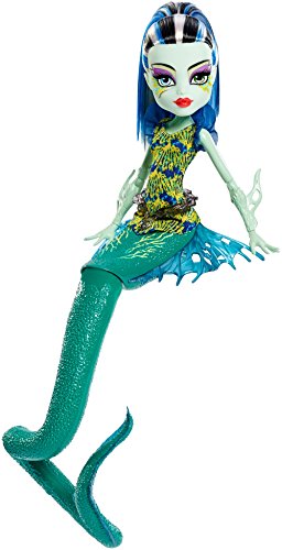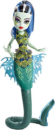 When the Monster High ghouls travel down under -- they ahead below sea level where they become fish-i-fied for an underwater adventure. Inspired by sea creatures that fit their characters, Frankie Stein doll stuns as an electric eel. A serpentine tail with curl allows the doll to stand on her own. Glow-in-the-dark accents add creepy cool, bioluminescent effects. Colors and decorations may vary.Feature
