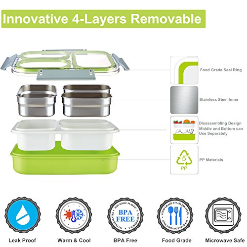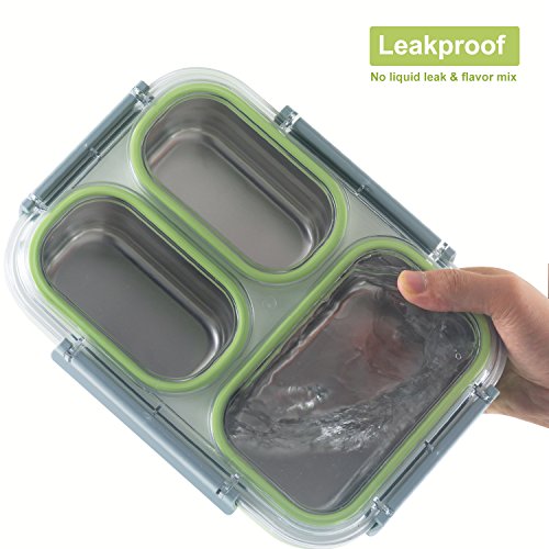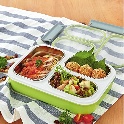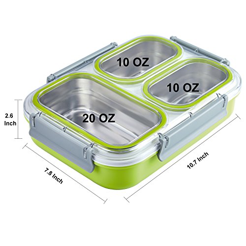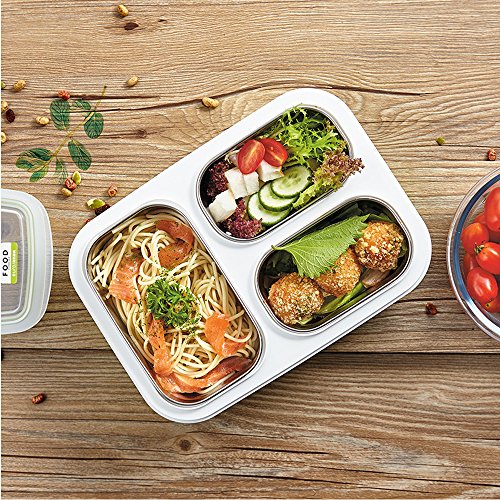 【PORTION CONTROL】3 removable stainless steel compartments portioned perfectly to feed adult or kid appetite, making it to be amazing container for packing healthy and balanced food whatever for school, office, outdoor.
