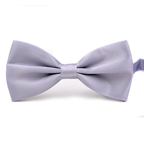 -. Title : Qianfuyin Men's Polyester Yarn Adjustable Neck Bow Ties Boys' Deluxe Satin Bowties - Silver