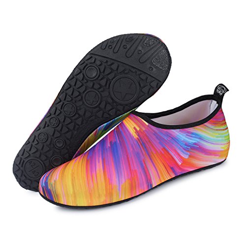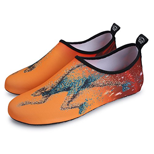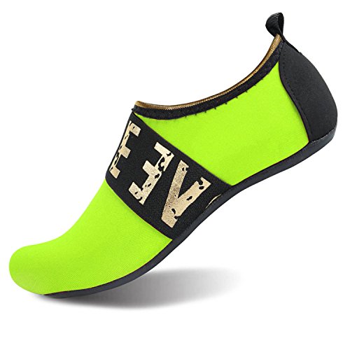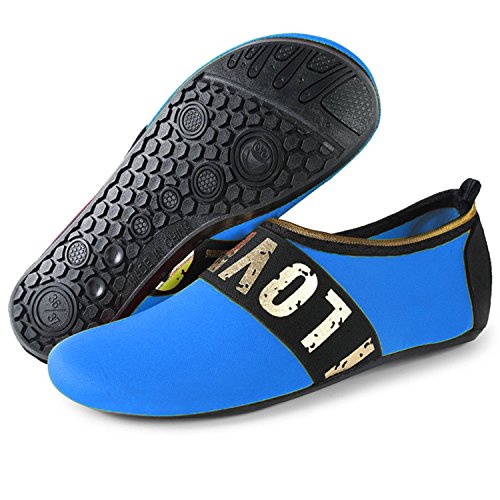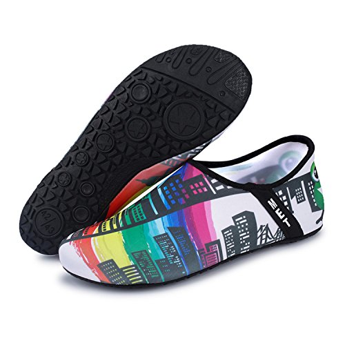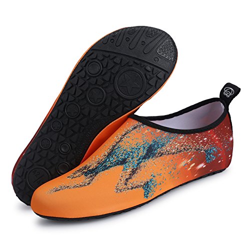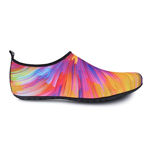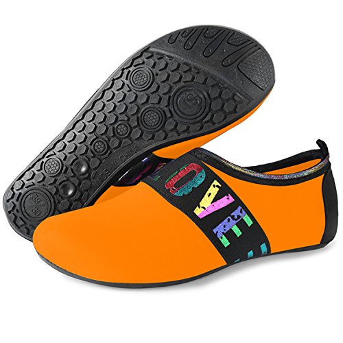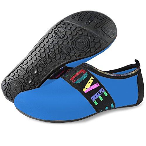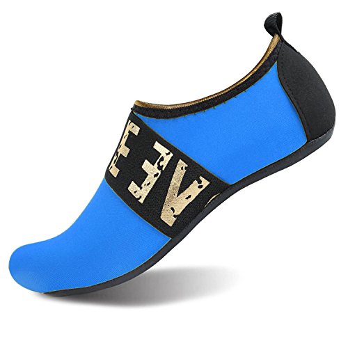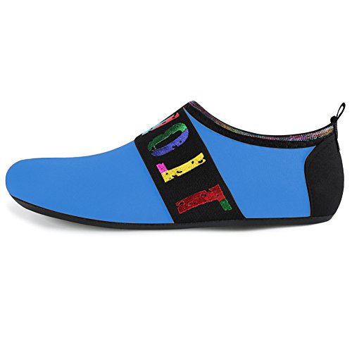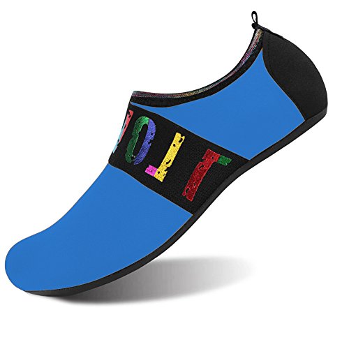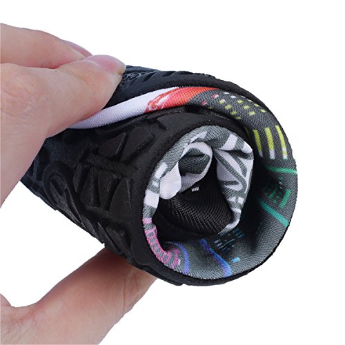 Benefits: - Breathable stretch upper use the elastic 92% polyester 8% spandex material, circulation breathable, more comfortable. - Quick-dry water shoes, with wear-resistant non-slip rubber soles, easy to drain, quick-drying. - Fixed shape provides good support to your feet from all directions and it's good premium quality prevents it from deform. - Streamlined water shoes, fitting on the foot, light and soft. -Comfortable breathable lining, with breathable insole, soles wading breathable. - Necessities in water park, surfing, beach volleyball, pilates, weight training, sailing, parasailing, boating, kayaking, windsurfing, walking, fishing, garden, lawn, car-washing and driving and yoga.
