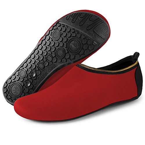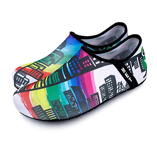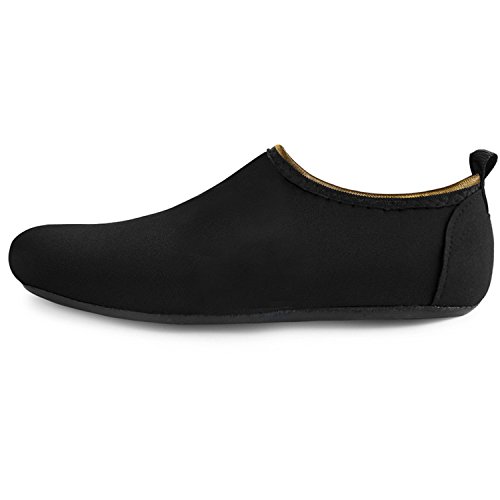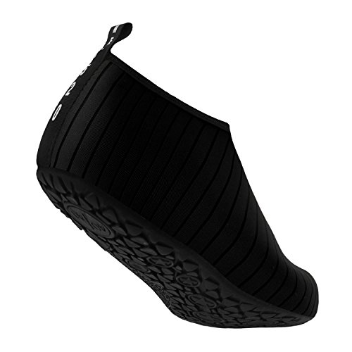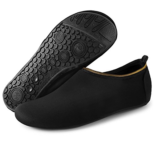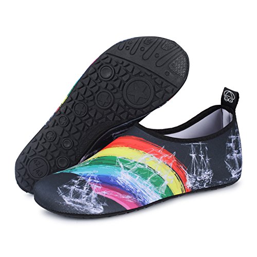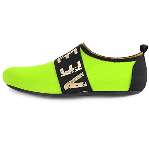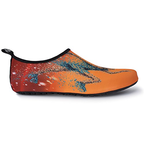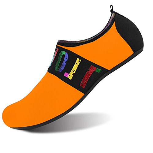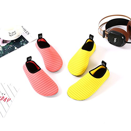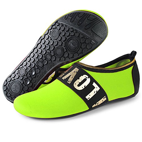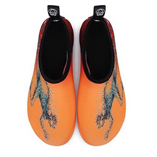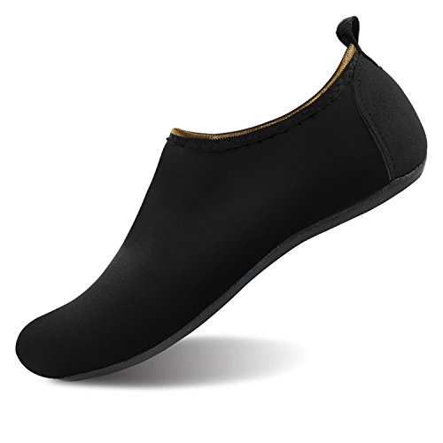 Benefits: - Breathable stretch upper use the elastic 92% polyester 8% spandex material, circulation breathable, more comfortable. - Quick-dry water shoes, with wear-resistant non-slip rubber soles, easy to drain, quick-drying. - Fixed shape provides good support to your feet from all directions and it's good premium quality prevents it from deform. - Streamlined water shoes, fitting on the foot, light and soft. -Comfortable breathable lining, with breathable insole, soles wading breathable. - Necessities in water park, surfing, beach volleyball, pilates, weight training, sailing, parasailing, boating, kayaking, windsurfing, walking, fishing, garden, lawn, car-washing and driving and yoga.