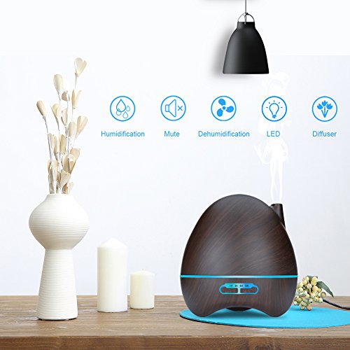 - ADJUSTABLE LED LIGHT. You can choose among 7 colors between two mode: steady on/changing color. Each color is adjustable between bright and dim.The soft light creates romantic atmosphere which helps you escape the hustle and bustle of modern life.TIME SETTING. 4 time setting modes:1 hour/3 hours/6 hours/steady on. Note: this is an essential oil diffuser, but you also can use it as a humidifier if you like