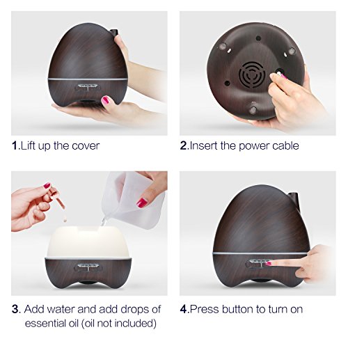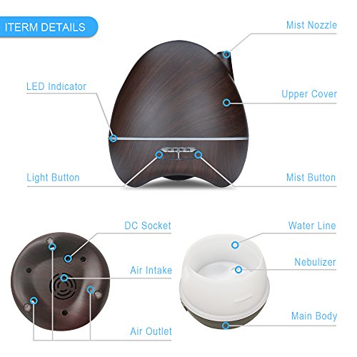 - UNIQUE AND COMPACT DESIGN. This aroma diffuser is coated with wood grain, which makes it look very natural and primitive. With compact and portable design, the cap of the aroma diffuser is easy to take off, you won’t bother to unscrew the cap with great force when your hands is wet. Just gently take off the cap, add water and essential oil, enjoy high-quality life.