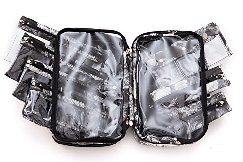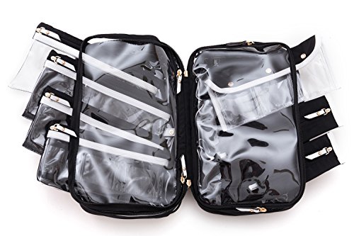 Binding : Apparel Product Description Our new "Signature Collection" from PurseN is a distinguished line of luxury accessories incorporating PurseN's ingenious original designs. The Signature Collection is revolutionary and complimenting its luxury appeal is new hardware and exquisite updated handles. Our Amour Travel Case features 13 individual compartments to keep your toiletries and travel essentials organized. The 2 large inside zippered compartments contain an elastic band to secure bottles, 5 removable pouches and unique removable cases for a toothbrush and razor. This chic travel case is a jet setter's dream with a satin easy care exterior, a handy outside hidden hook perfect for hanging on a bathroom and/or bedroom door and a clear, protective cover interior that is resistant to spillage. 0