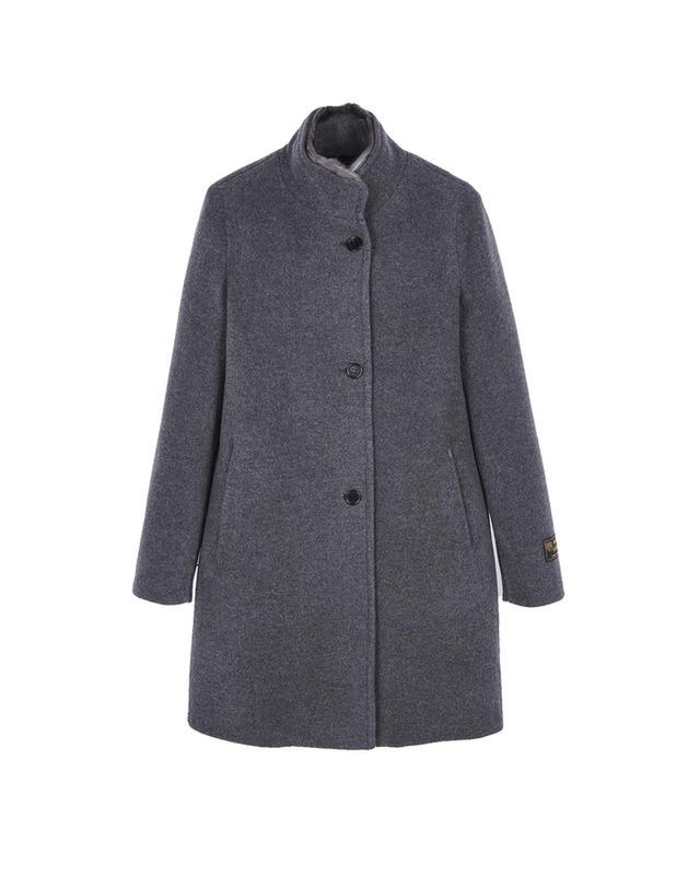 이태리 수입 울과 캐시미어 혼방 소재를 사용하였으며 하이넥의 코쿤핏 실루엣으로 세련된 느낌을 살렸습니다.
