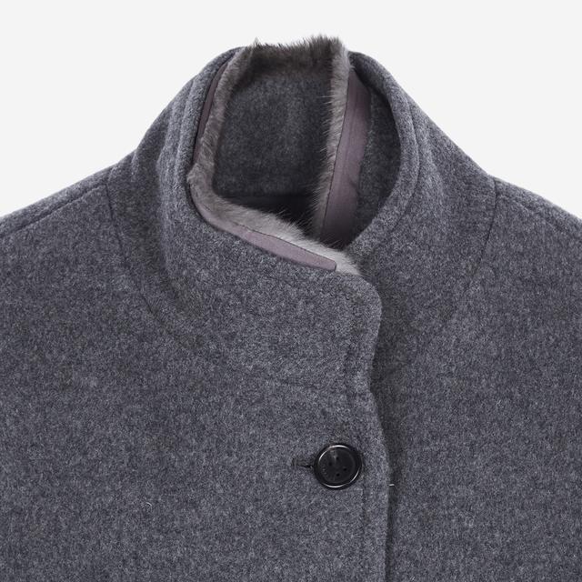카라 안쪽으로 탈착가능한 밍크 퍼를 배색하여 고급스러운 코트입니다. 소맷단에 트임을 넣어 활동이 편안합니다.