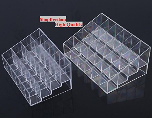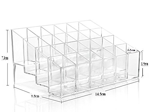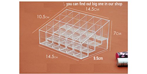 -. Feature : Made of acrylic material . come with necklace exterder. / Trapezoid lipstick holder,Size: (L x W x H): 14.5*9.5*7.3cm / 24 lattices. Each external Size:2.5*2.5*3.5cm . you can find out big one in our shop. / For Lipstick, mascara, Perfume makeup show