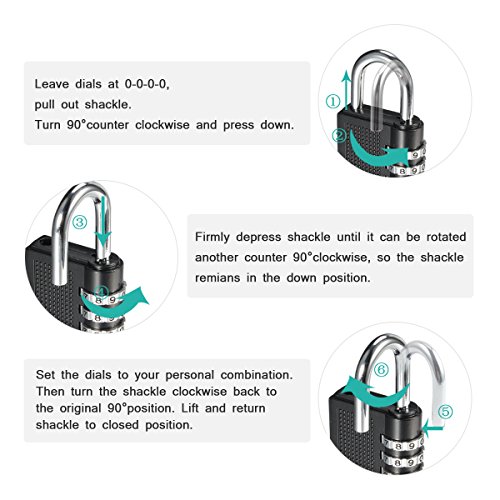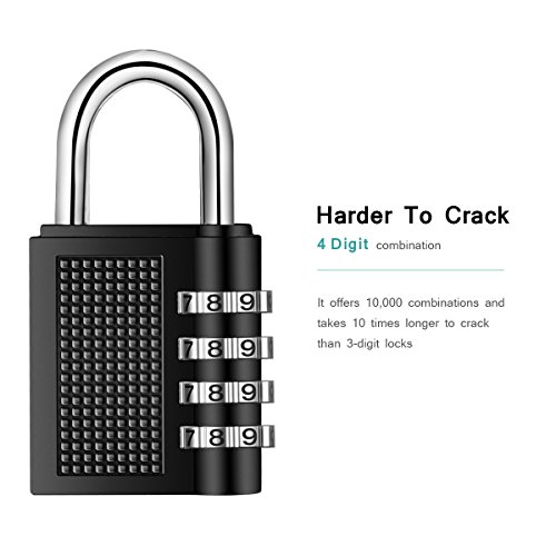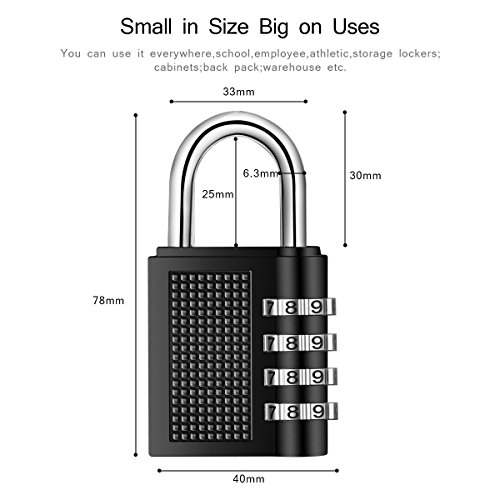 -. Feature : 【High Security】4 Digit Combination Locks have 10000 combination codes could be set at your minds, more secure. / 【Sturdy Construction】Zinc alloy and plated steel of the 4 Digit Combination Locks, Durable structure, anti rust,weather proof. / 【Widely Used】4 Digit Combination Padlock be wildly used to lage, backpacks, bags, small cabinets, briefcases, computer bags, gym locker and sports locker. / 【Easy to Use】 Easy to program 4 digital password , the perfect size, do not need to bring the key. / 【2 Pack】 Combination lock set includes 2 zinc alloy 4-digit resettable combination travel locks.