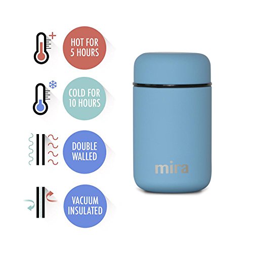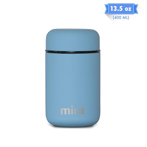 MIRA Lunch, Food Jar, Vacuum Insulated Lunch Thermos, 13.5 Oz, SkyHigh-Quality: The MIRA durable lunch food jar is made of 18/8 food-grade stainless steel. The high-quality insulated lunch container keeps your healthy, homemade and delicious lunches and snacks hot for up to 5 hours or cold for up to 10 hours in this double wall vacuum jar. Eco-friendly, reusable, easy-to-fill wide mouth is also easy to clean.