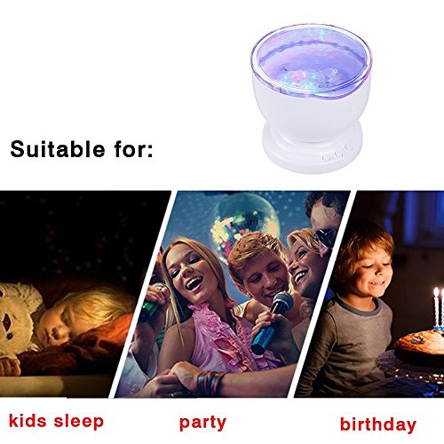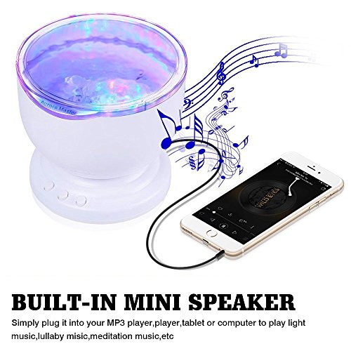 -. Brand : Supermarkshop -. Color : Multicolor -. EAN : 0712182991501 -. Feature : 12LED & 7Colors - 12 super bright LED beads and 7 lighting modes, you can choose which mode show depending on your mood or the surrounding at ease. / Adjustable from 0Degree - 30Degree angles for maximum relaxation. / Built-in Music Player for Kids Sleep - Enjoy your favorite songs and sounds via connecting with external audio source. / Automatically Shut-off Projector - Power efficient, auto shuts down after 1 hour, great way to relax before bed and/or to help your children sleep. / Usb & Battery & Adapter Powered - Offers greater mobility and flexibility [USB power cable and adapter are included]. -. Label : Supermarkshop -. Manufacturer : Supermarkshop -. MPN : LB06-Multicolor -. PartNumber : LB06-Multicolor -. ProductGroup : Lighting -. ProductTypeName : HOME_LIGHTING_AND_LAMPS -. Publisher : Supermarkshop -. Studio : Supermarkshop -. Title : Supermarkshop Multicolor Ocean Waves Projector Night Light with Built-in Mini Music Player -. UPC : 712182991501