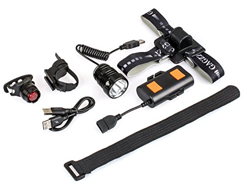WHAT'S IN THE BOX -1x Bike front light -1x Elastic head strap -1x USB charging cable (no adaptor) -1x 4400mAh Li-ion Rechargeable Battery Pack -1x Free rear light (include 2*CR2032 Batteries) -1x Mount clip -1x Instruction manual 0