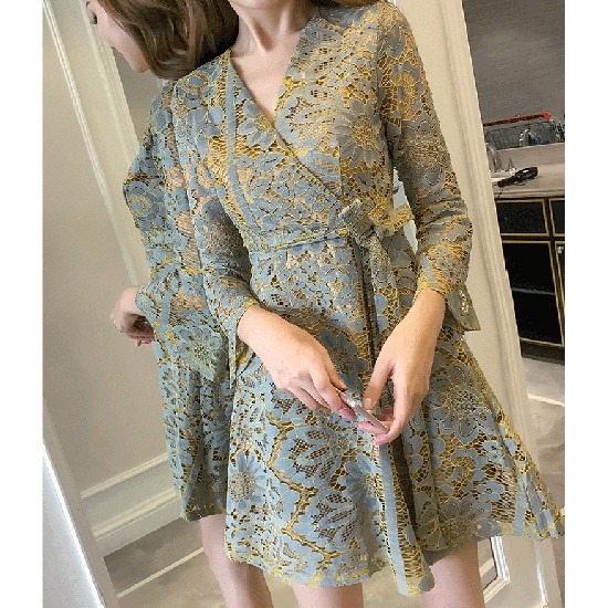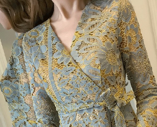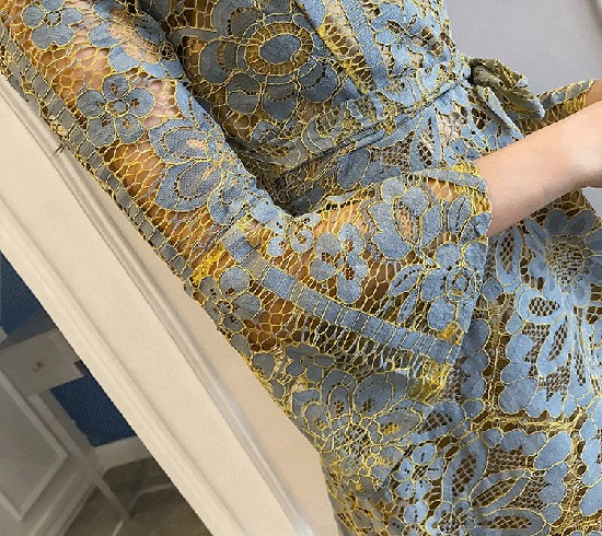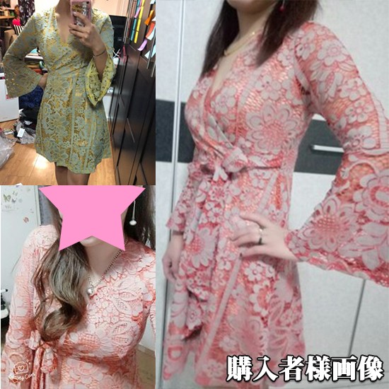 大きな花柄のレースをあしらったキュートなワンピース。