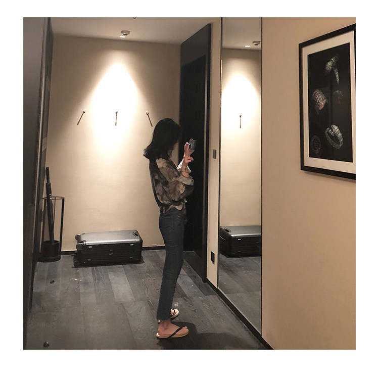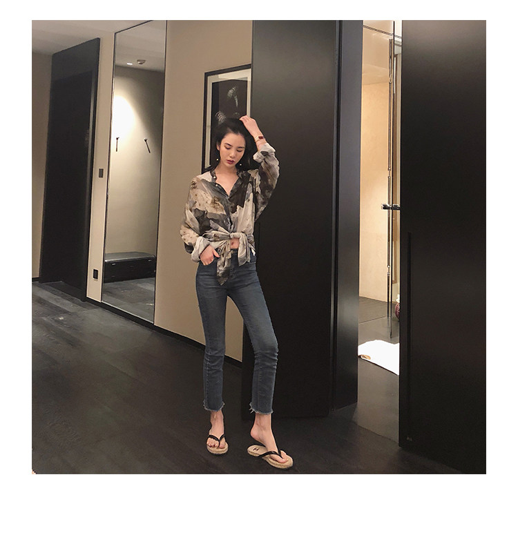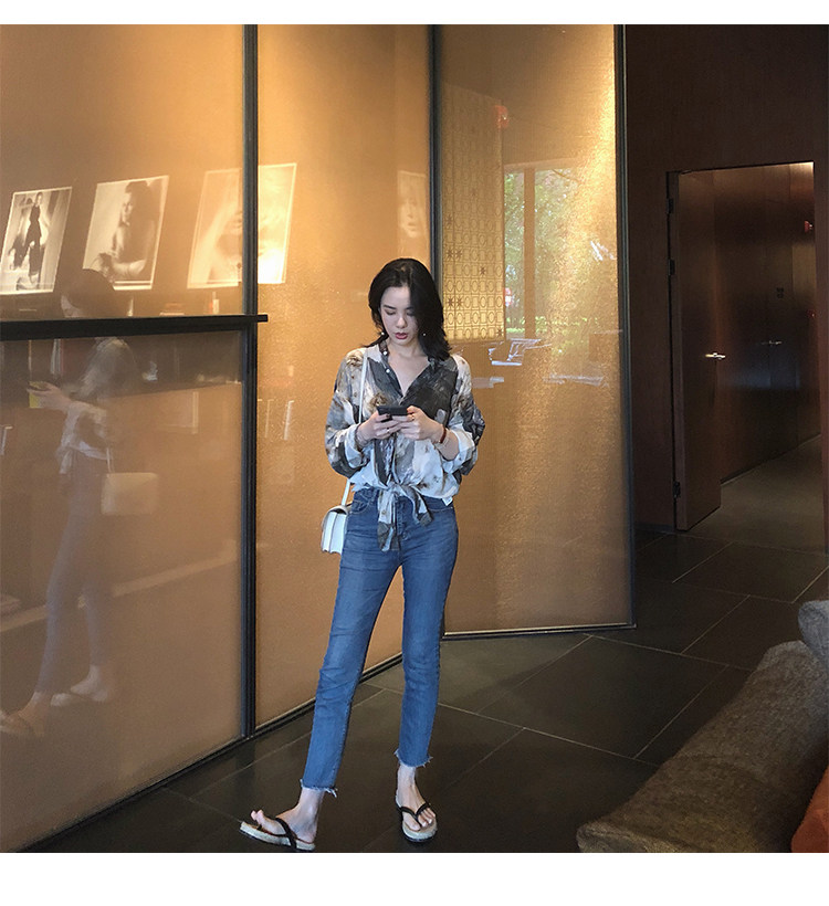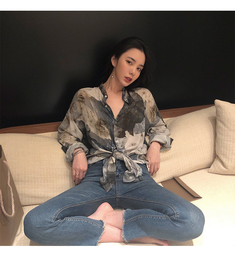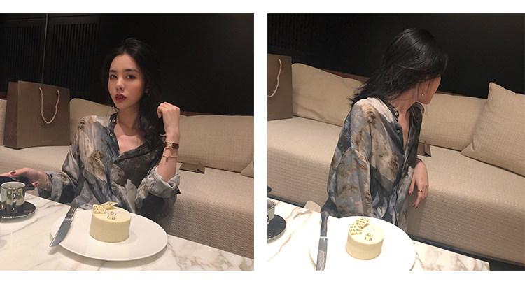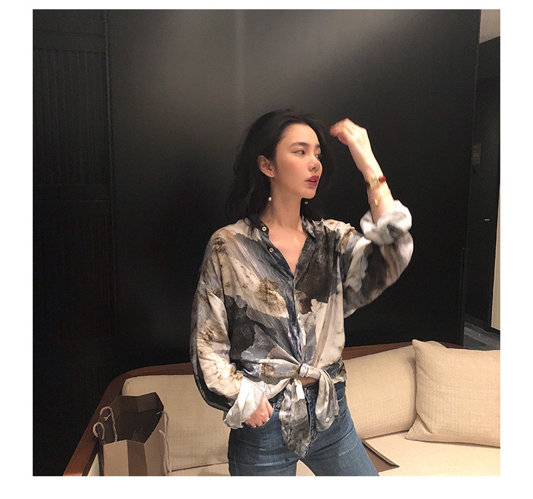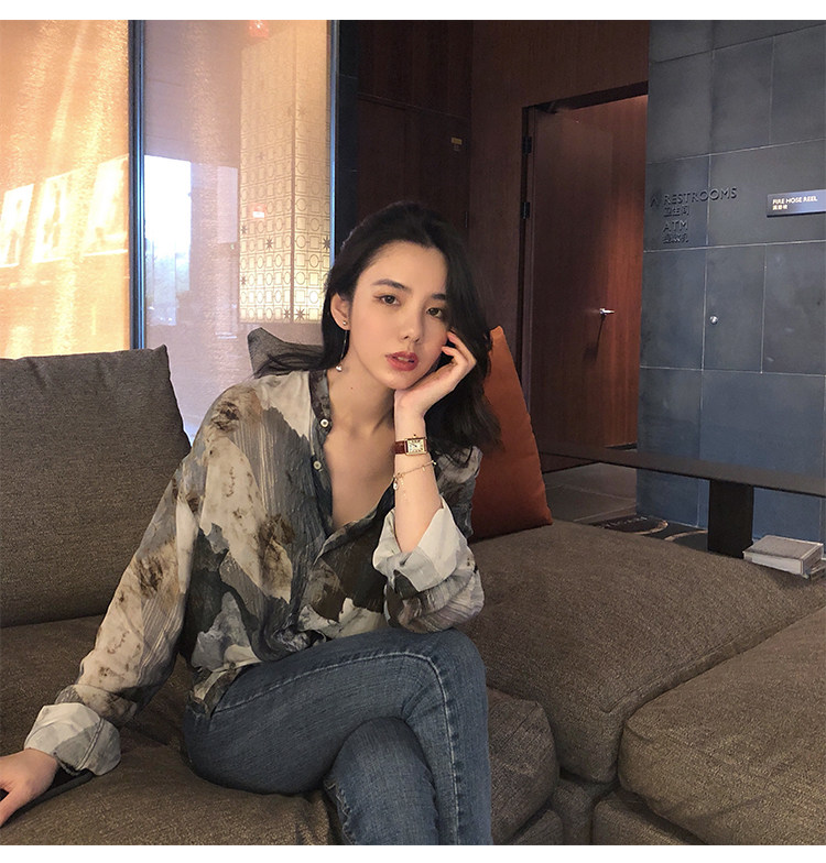 2018Ulzzang春夏秋冬女装韩版chic复古时尚简约宽松长袖印花衬衫上衣