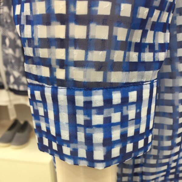 체크패턴을 폴리 자카드 조직감 소재어 프린팅하여 이원한 느낌을주며 로고와 별모양의 프린트,핫픽스로 포인트를 준 셔츠형 블라우스 아이템.