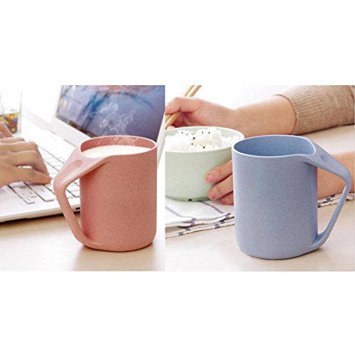-. Feature : Ideal for drinks, juices, water, sodas, coffee or other uses. / Wheat straw coffee cup is safe for temperatures up to 210 degrees / Creative design the most ergonomic with thumb rest and easy to take and unbreakable. / Wheat straw coffee mug with a maximum capacity of 350ml easy to clean.also can be used as toothbrush holder and rinse mugs / 2 Pack wheat straw coffee mug in per order, you can share with your lover, family and friends.