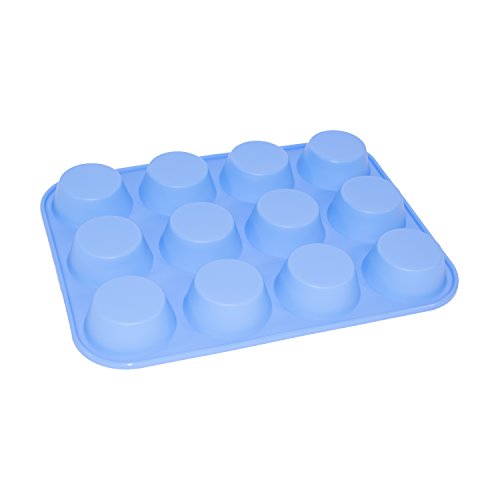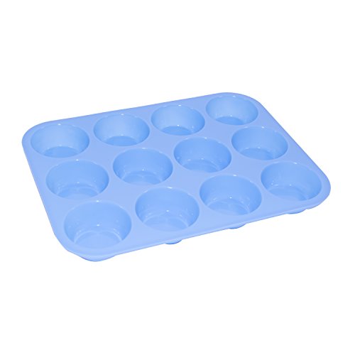 ALEKO SFC01 Heat Resistant Non Stick Silicone CupCake Muffin Tray 12 Cups Mold Pan, Blue