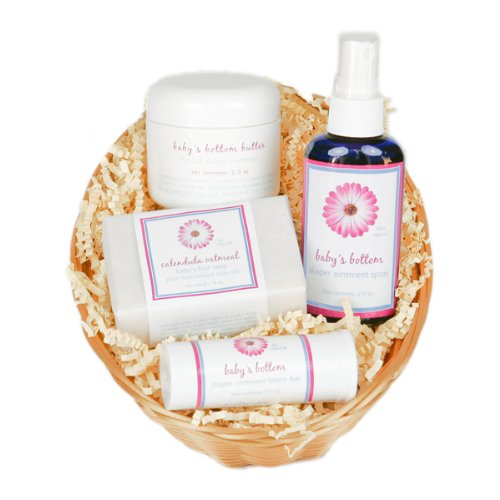 -. Feature : An entire line of natural baby care products / Your basket set includes a 4 ounce bar of Baby's 1st Soap, a 2 oz jar of Baby's Bottom Butter, Baby's Bottom Solid Lotion Bar, 2 oz Baby's Bottom Soothing Spray. / Our moisturizing baby soap is unscented, with gentle goats milk and honey. / (Please note - duck not included)
