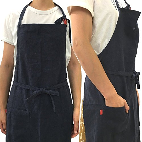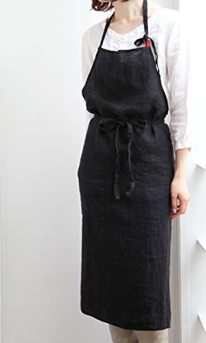 cozymomdeco French APRON [Linen Premium] Gift Chef Works Handmade Apron Japanese style Cross Front with pockets Shape (Black)