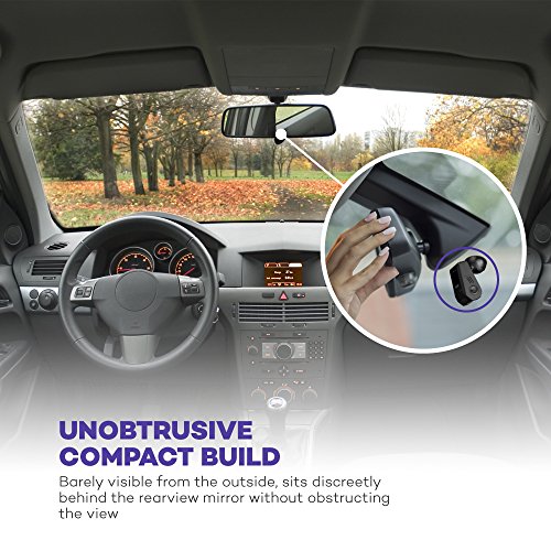 Unobtrusive Compact Build: 3.07"x1.97"x1.46" discreet dimensions. Barely visible from the outside, the dash cam sits discreetly behind the rearview mirror without obstructing the driver’s view or maneuvers.