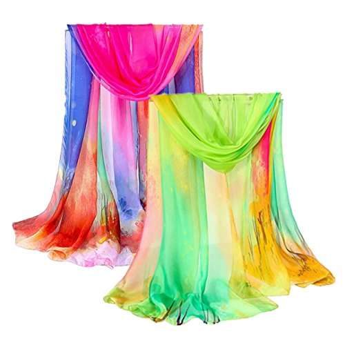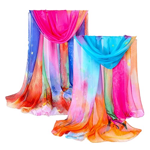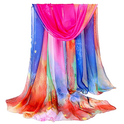 -. Feature : SIZE: 175cmx100cm, equals to 68.9 inch x 39.4 inch long scarves.Best length for cover using. / MATERIAL: 100 % silk feeling polyester, only 80g equals to 0.18lb, really light weighted and soft touching. / FASHION DESIGN: Chic fashionable scarf, matches for many occasions, painting P.R.Inted patterns, three vivid colors to show your elegance.Perfectly designed length, covers and shows your figure. / APPLICATIONS: The classic silk scarves are very easy matching. You can make it go with so many kinds of clothes.Not only for neck wrappings, but also can be tied around your waist, long head covers, or as your handbag decorations accessories. For summer, use it as beautiful cover up over bikinis when on beach; For SP.R.Ing and Autumn, warm and shows your fashion tastes. / MORE CHOICES: Kook Club offers multi options of silk scarves, find out more beautiful scarves by clicking "Kook Club" above the title.