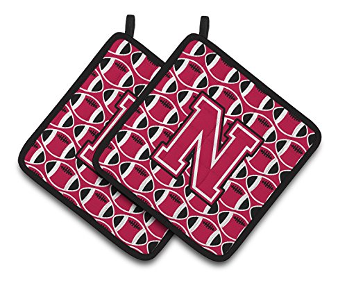 Caroline's Treasures Letter N Football Crimson & White Pair of Pot Holders CJ1079-NPTHD, 7.5HX7.5W, Multicolor