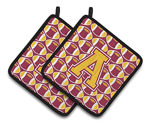 Caroline's Treasures Letter a football Maroon & Gold Pair of Pot Holders CJ1081-APTHD, 7.5HX7.5W, Multicolor