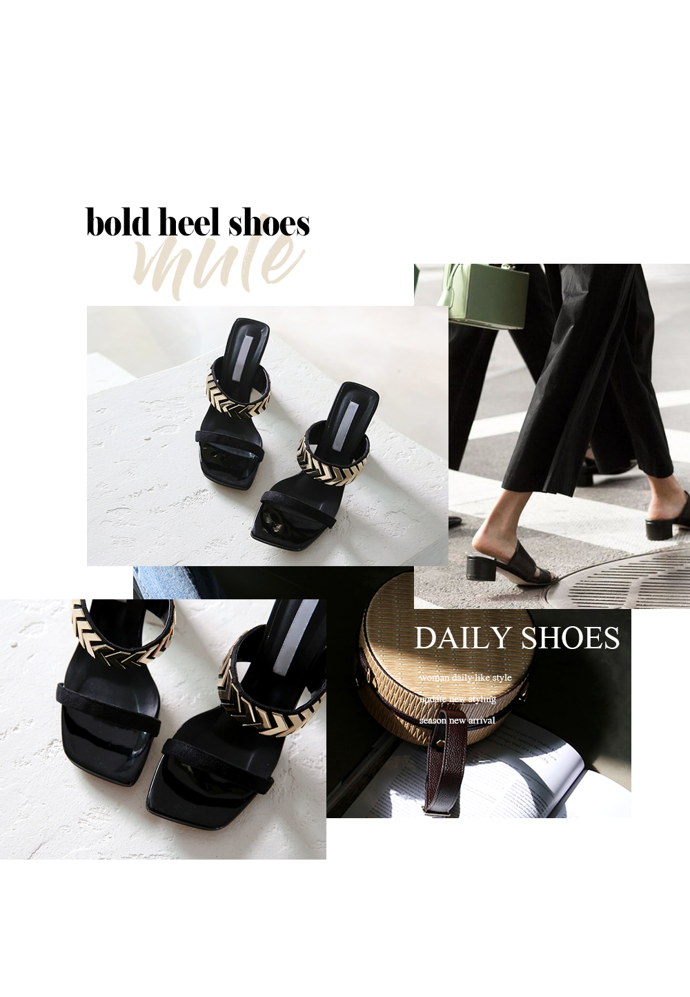 볼드한 굽을 가진 뮬입니다.