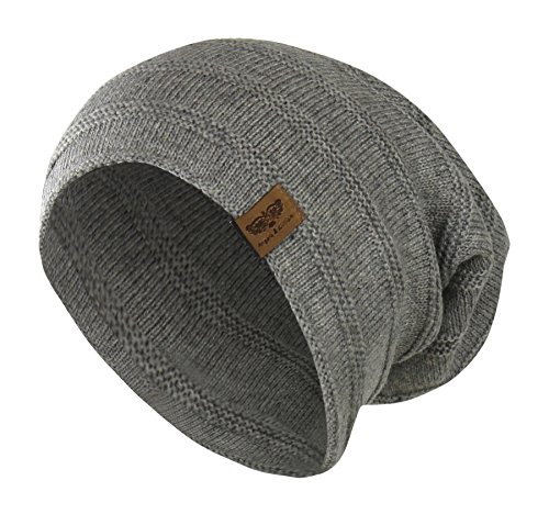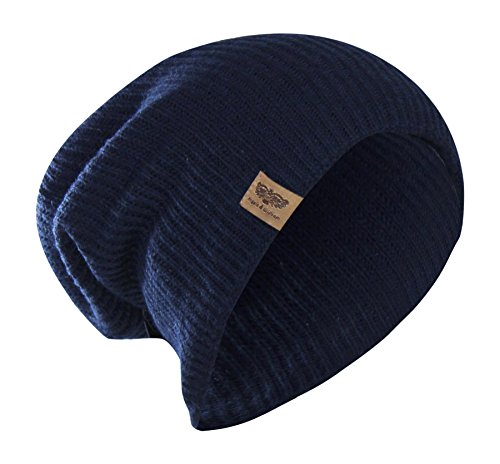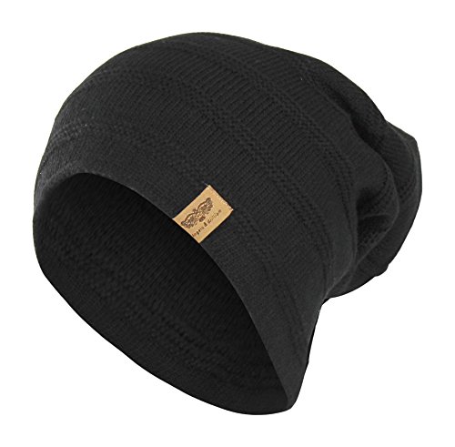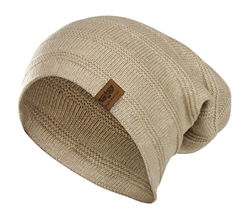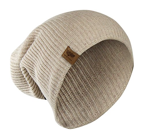 Reversible Winter Knit Slouchy Beanie Hat - Hipster Unisex Knitted Slouch Cap