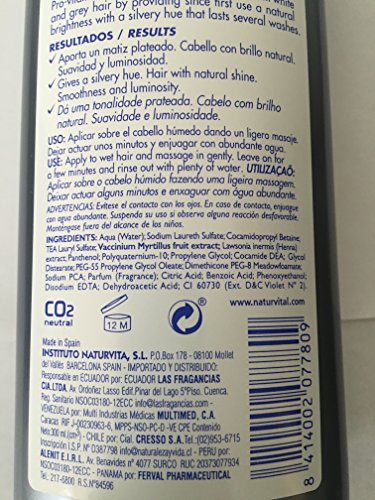 Removes the yellowish hue from white and grey hair by providing a natural brightness with a silvery hue that lasts several washes.