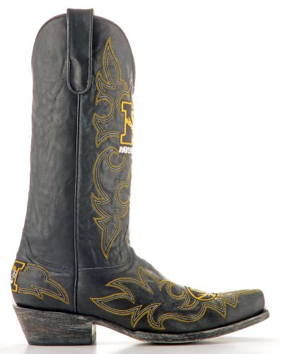 Studio : Gameday Boots Publisher : Gameday Boots Binding : Sports Product Description Whether tailgating at the big game or just bumming around, you can rest assured others will know where your allegiances lie when wearing a pair of Gameday University Of Missouri boots. Constructed from the highest quality distressed leather, these handcrafted boots are sure to provide quality and comfort for countless championship seasons to come. 0