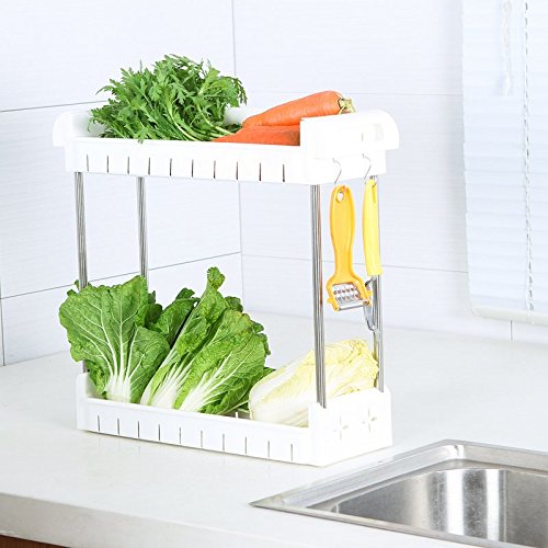 Stackable Kitchen Cabinet and Counter Shelf Organizer,White