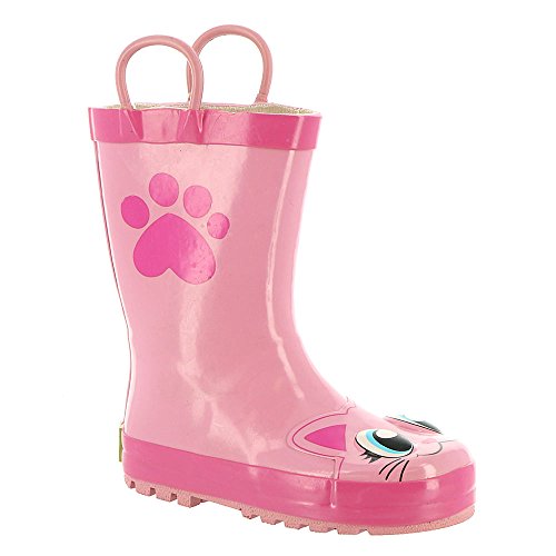 This adorable rain boot from Western Chief features easy-on pull handles and vibrant detail.