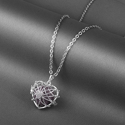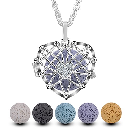 INFUSEU Cubic Zirconia Heart Aromatherapy Jewelry Essential Oil Diffuser Necklace Love Locket Pendant + 5PCS Lava Rock Stone for Women