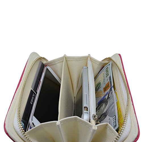 - Feature : Dimension: 8.3 x 4.2 x 1.0 inches (L x W x H) / Compatibility: Suitable for Apple iPhone 6 (4.7) iPhone 6 Plus (5.5) 5/5S/5C, Samsung Galaxy S6 S5 S4 S3 Note 4 3 2, HTC and all other cellphone, money, ID card, credit card, keys, and other small stuffs / It is made of premium PU leather which is durable and pretty. It is designed by bright stone texture. / This super convenient bag can be used as a clutch bag/purse wallet/wrist bag, Wrist strap design makes clutch into an essential and easy to carry, removable wrist strap is 6", / Great zipper bag, it is precise and multi-function designed with 3 separate pouches, 10 card slots .Best organizer for women