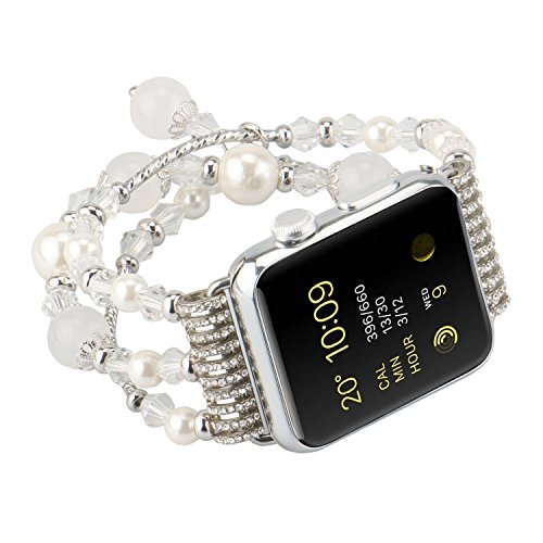 -. Title : AWSTECH Handmade Faux Pearl Natural Stone Replacement Strap Jewelry Bangle for Apple Watch Series 2 Series 1 38/42mm
