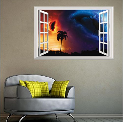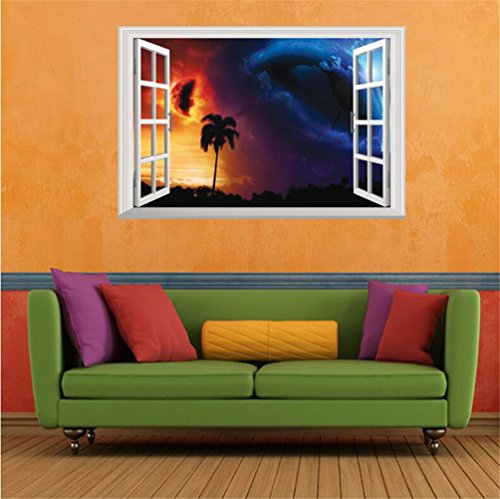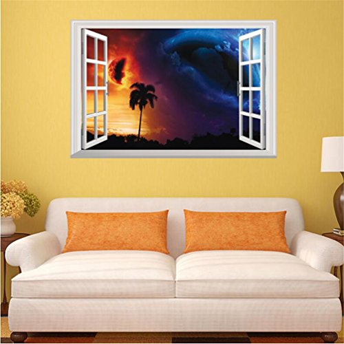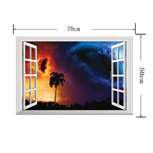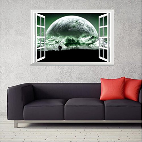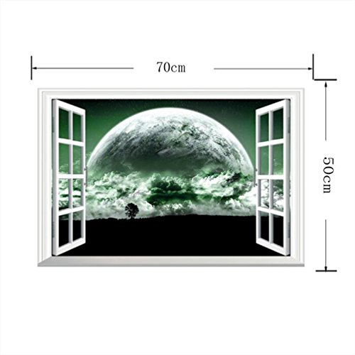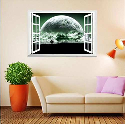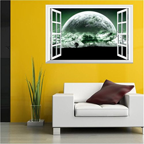 -. Title : 3D Outer Space Planet Landscape Fake Windows Wall Stickers Removable PVC Galaxy Wall Decal For Livingroom Bedroom Kid's Room