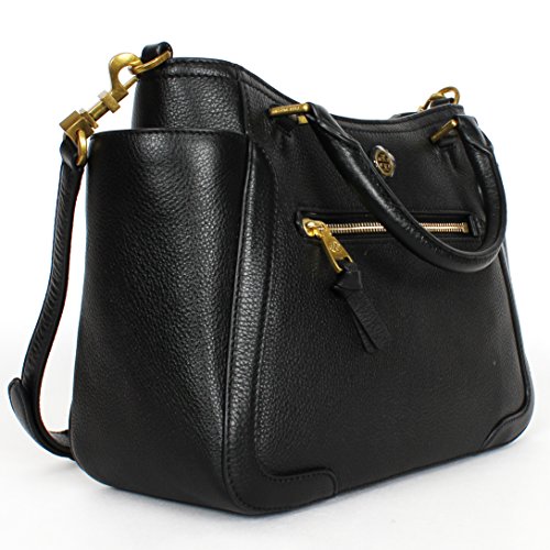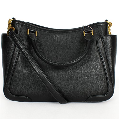 Tory Burch Frances Small Satchel in soft pebbled leather. Magnetic snap closure. Double top handles, 4.5" drop. Removable, adjustable cross-body strap with 23.3" drop. Exterior front zip compartment, two side open pockets. Interior zipper pocket, snap pocket and 2 open pockets. Height: 8.3" Length: 12" Depth: 4.7"Feature