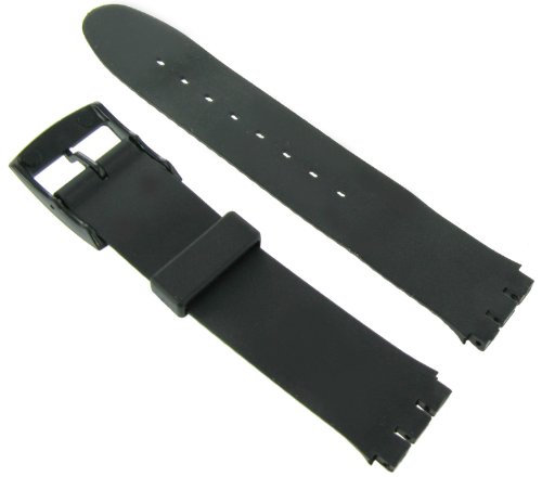 - Feature : Fits Swatch / Band Width: 17mm / Length: 8 inches including buckle (Regular) / Color: Black / Watch Band Material: Rubber PVC