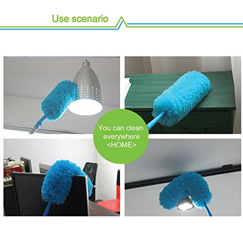 - EASILY CLEAN HARD TO REACH AREAS ¨C FLEXIBLE DUSTER ¨C The microfiber feathers puff out to clean huge areas with every swipe, but they can also bend and condense down to squeeze into tight spaces around and under appliances, furniture, and electronics. The long length of this duster will help you reach ceiling corners, blinds, and other hard to reach areas. The duster is flexible to bend and dust on top of ceiling fans and bend to reach corners or behind furniture. EXTENSION POLE NOT INCLUDED.