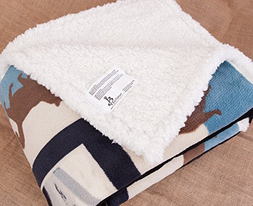 Back material: sherpa fleece.Dimensions: 50" x 60"