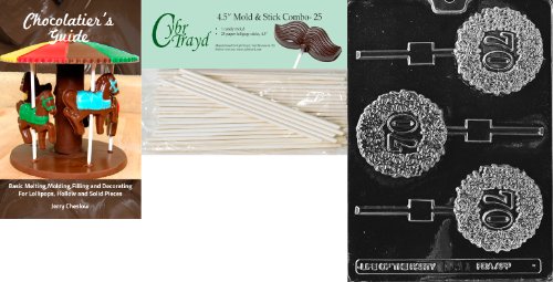 Cybrtrayd '70th Lolly' Letters and Numbers Chocolate Candy Mold with 25 4.5-Inch Lollipop Sticks and Chocolatier's Guide