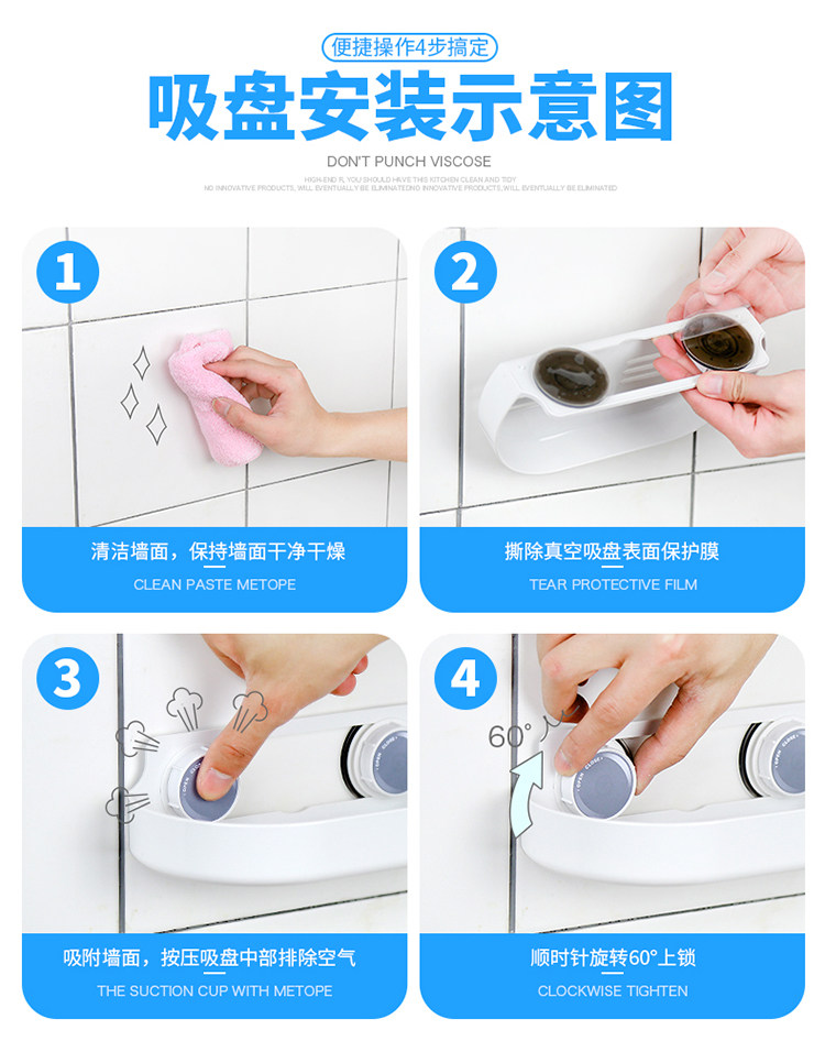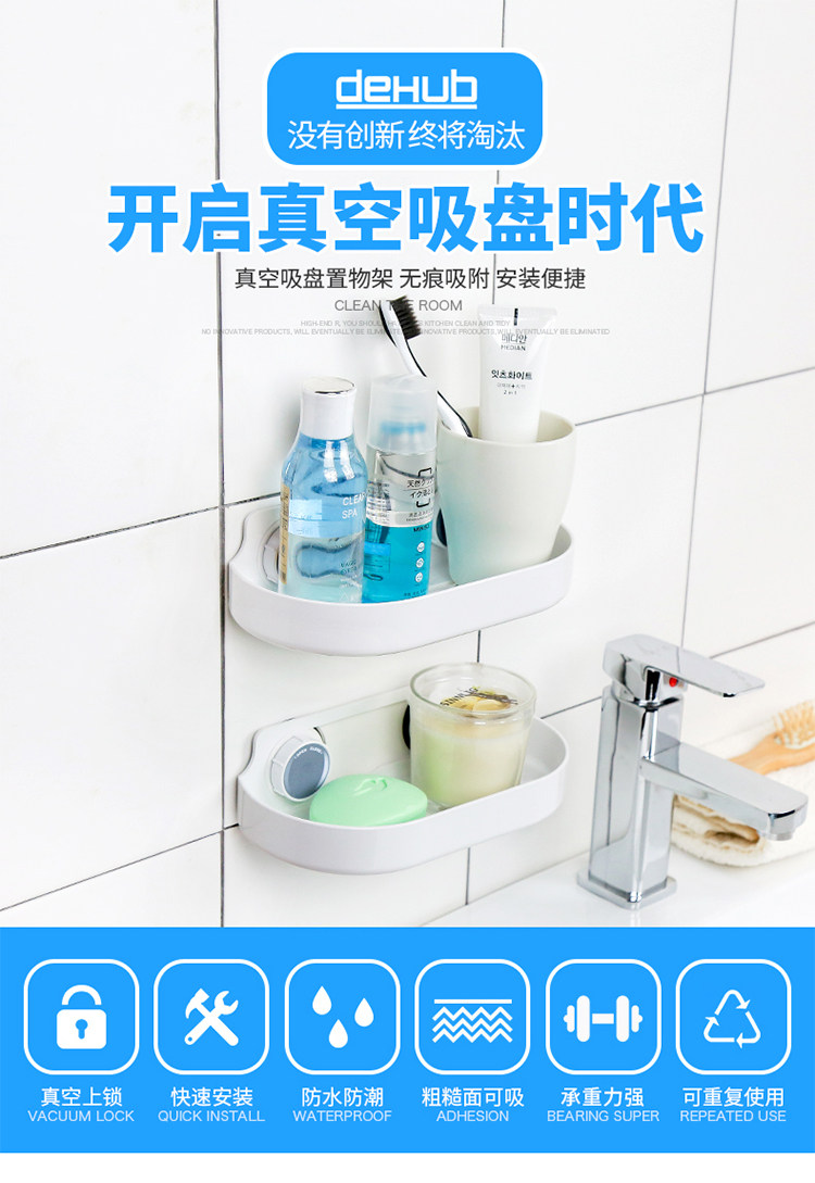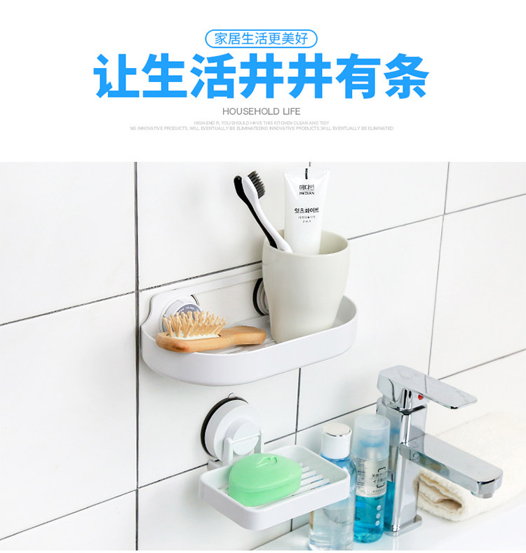 洗手间置物架卫生间强力吸盘储物架厕所免打孔吸壁式收纳架子