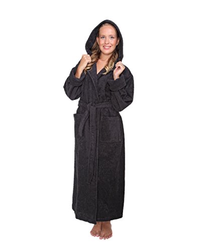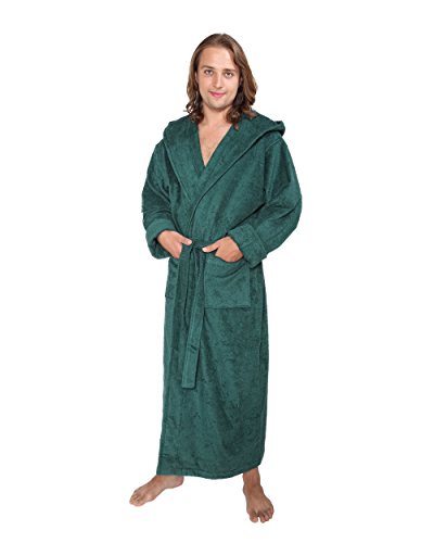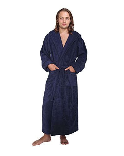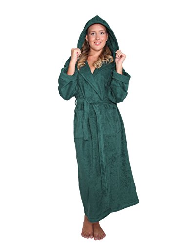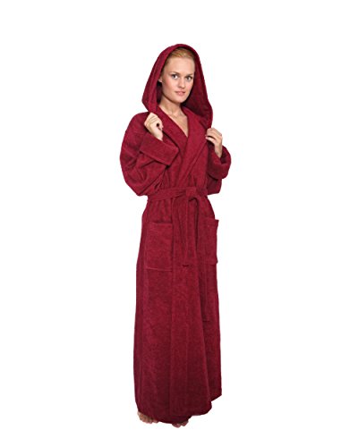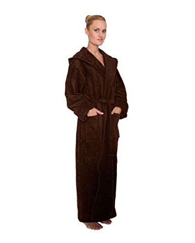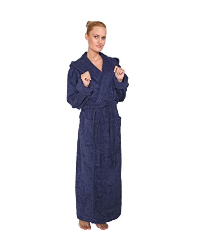 Arus Bademantel Hoodn Full fur Damen und Herren, 100% Baumwolle, extralang, mit zweilagiger Kapuze